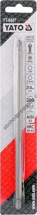 Bit, nástavec YATO,šestihran HEX 1/4" prodloužený 200mm, křížový PH2, YT-0487.