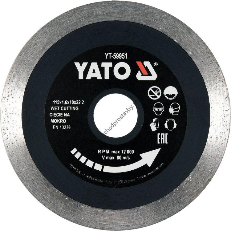 Celoobvodový diamantový řezný kotouč YATO, 115x22,2x1,6mm s vysokým segmentem YT-59951.
