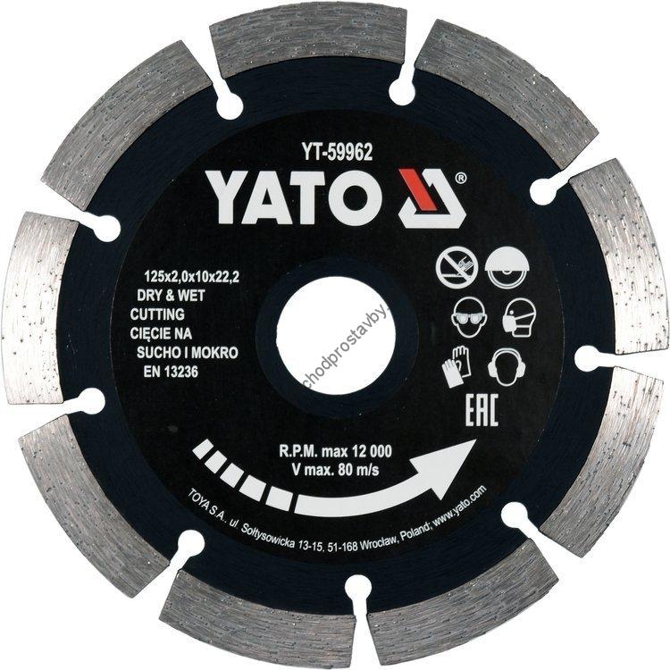 Diamantový kotouč YATO, řezný segmentový 125x22,2x2mm s vysokým segmentem 10mm YT-59962