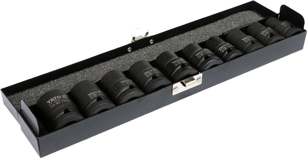 Gola sada 10 ks rázových 1/2" nástrčných klíčů, ořechů, šestihranných 10-22 mm YATO pro pneumatické nářadí YT-1025.