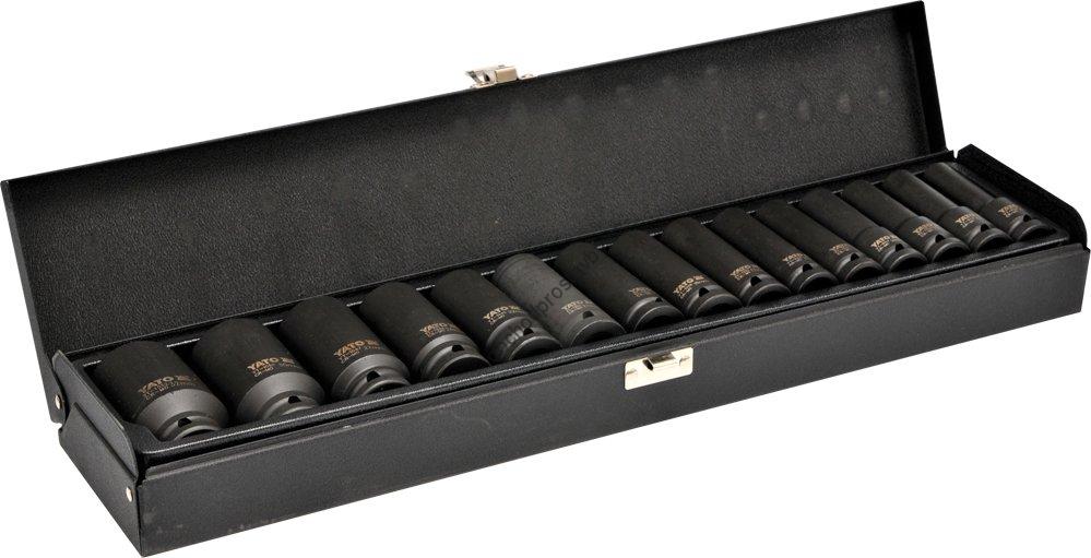 Gola sada 15 ks rázových 1/2" nástrčných klíčů, ořechů, šestihranných 10-32 mm YATO pro pneumatické nářadí YT-1055.