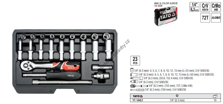 Sada nástrčných klíčů, ořechů gola YATO 1/4" 23ks YT-14451.