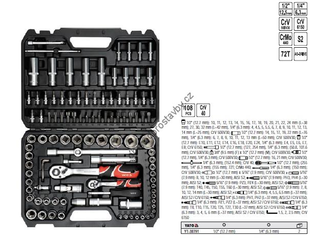 Sada nářadí, bity, ořechy, hlavice, gola sada YATO 1/2",1/4" velikost L 108 ks YT-38791.