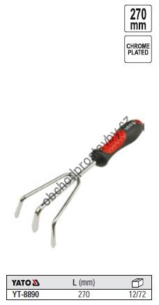 Hrábě, motyčka, kultivátor, chromovaný 3 zuby YATO 420mm YT-8890.