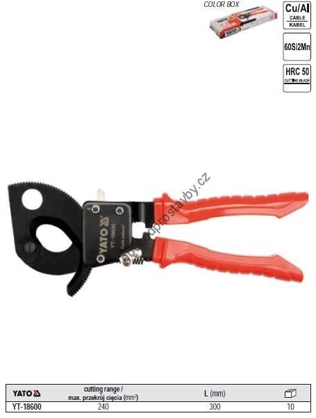 Kleště štípací ráčnové na kabely 300mm YATO YT-18600