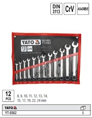 Klíče očkoploché YATO sada 12ks 8-24mm CrV YT-0362