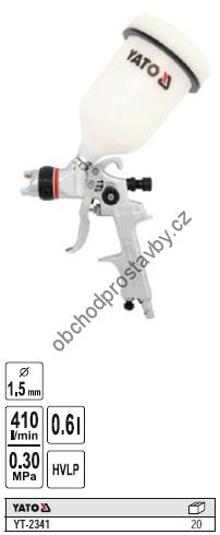 Lakovací stříkací pistole YATO s nádrží 0,6L HLVP YT-2341.