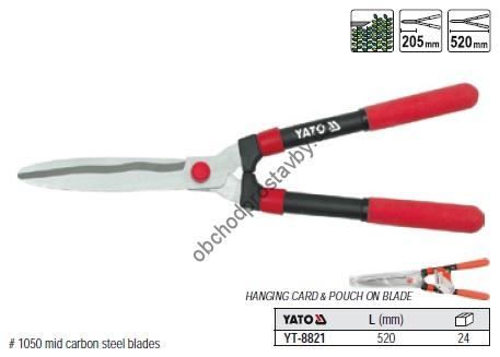 Nůžky na živý plot YATO s celkovou délkou 520mm a délkou ostří vyrobené z kvalitní oceli 205mm.