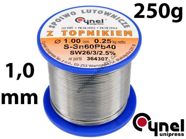 Pájecí, letovací cín sn60 pb40 s kalafunou CYNEL UNIPRESS 250g o průměru drátu 1 mm, TO-76811.