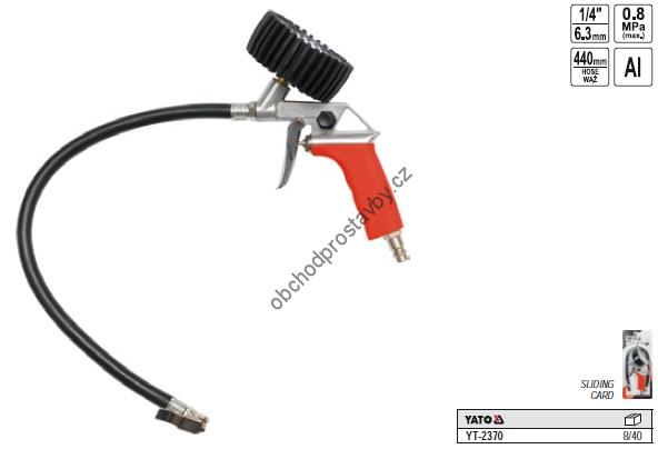 Pistole na plnění,hustění kol YATO s manometrem 8 bar YT-2370.