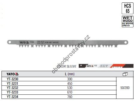 Plátek, list, čepel do obloukové, rámové pily YATO 530 mm k řezání mokrého dřeva YT-3232.