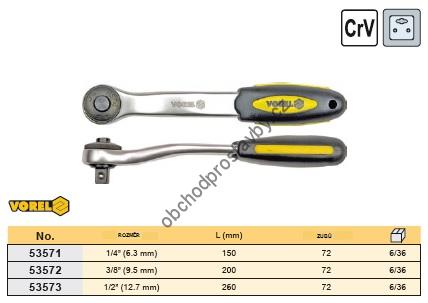 Ráčna 3/8" CrV chromvanadiová VOREL 72 zubů zahnutá 200mm TO-53572