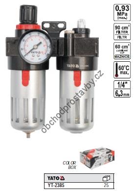 Regulátor tlaku vzduchu 1/4" YATO s filtrem, odlučovačem vody, odkalovačem a přimazáváním YT-2385.