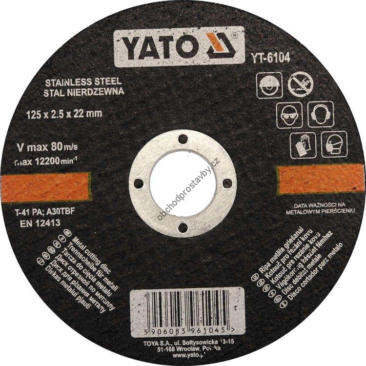 Řezný kotouč YATO na ocel a nerez 125x2,5x22mm, YT-6104