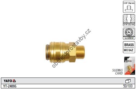 Rychlospojka s venkovním závitem 3/8" YATO pneumatická mosazná YT-24095