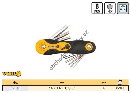 Sada 8 ks imbusových klíčů VOREL, CrV kapesní HEX 1,5-8mm, TO-56506