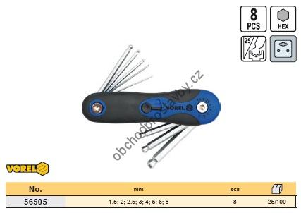 Sada 8 ks imbusových klíčů VOREL s kuličkou, CrV kapesní HEX 1,5-8mm, TO-56505