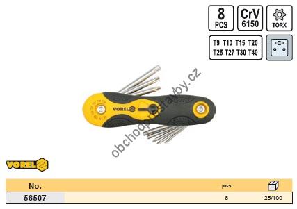 Sada 8 ks torxových chromvanadiových klíčů VOREL, kapesní TORX T9-T40, TO-56507