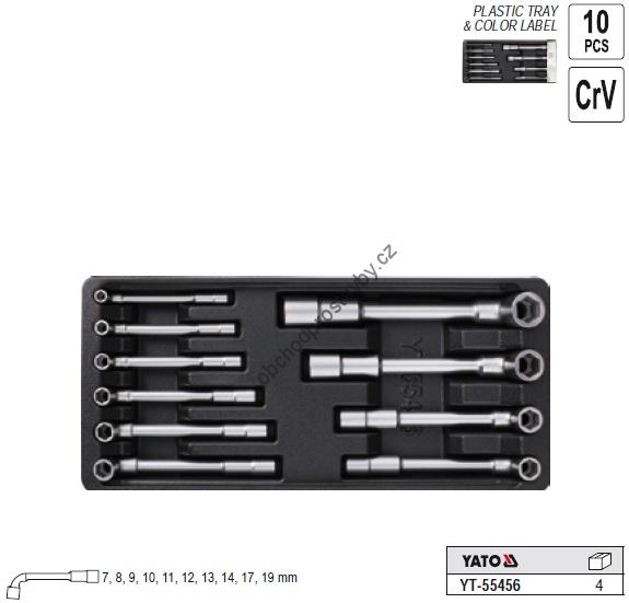 Sada 10 ks gola zahnutých fajfkových klíčů CrV 7-19 YATO YT-55456 výměnná vložka pro dílenský vozík, skříňku.