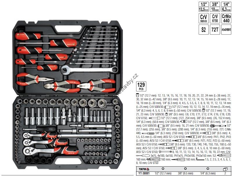 Sada nářadí, klíče, bity, gola sada YATO 1/2",3/8",1/4" XXL 129 ks YT-38881