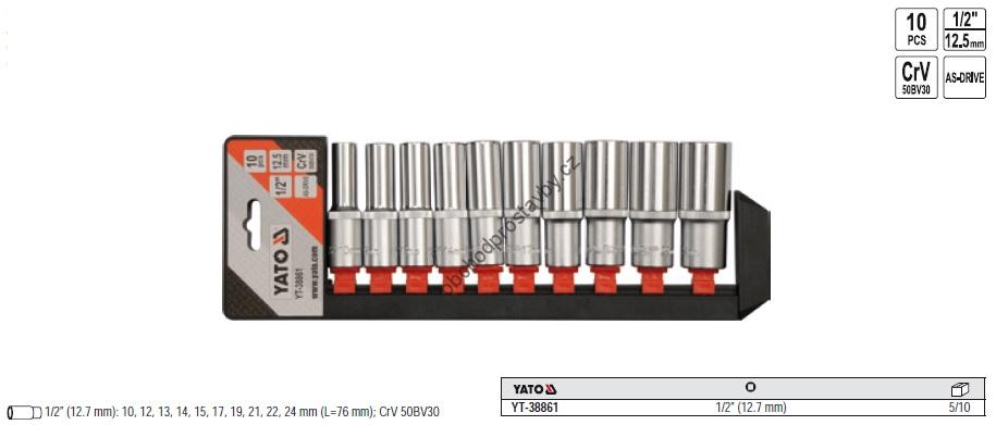 Sada nástrčných klíčů gola YATO 1/2" 10ks YT-38861