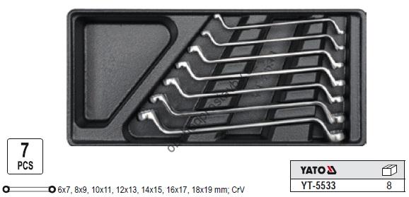 Sada 7 ks eskových,očkových zahnutých klíčů CrV 6-19 YATO YT-5533 výměnná vložka pro dílenský vozík, skříňku.