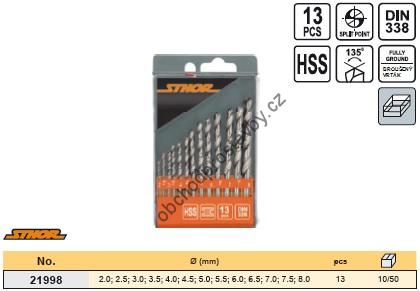 Sada vrtáků do železa STHOR 2-8mm HSS 13 ks ST-21998 stejná jako (TO-21998)