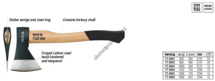 Sekera s násadou z ořechového dřeva YATO 800g YT-8002