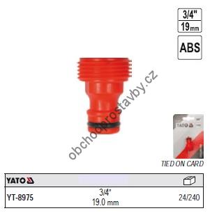 Šroubení s venkovním závitem, koncovka, redukce, vsuvka YATO připojení rychlospojky k vodovodu 3/4" (19mm) YT-8975.