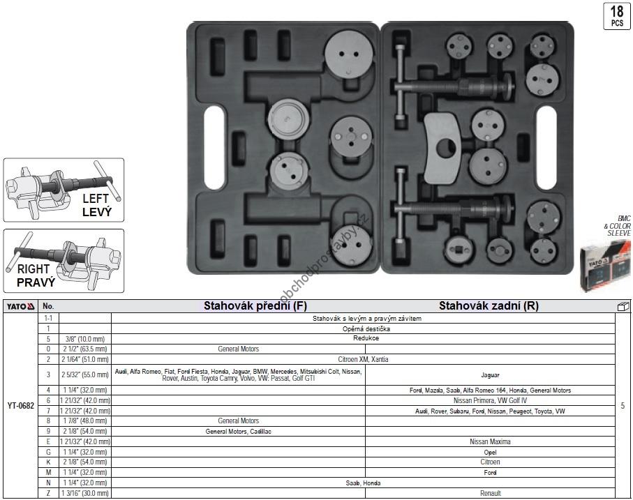 Stahovák na třmeny brzd, montáž kotoučových brzd, sada 18 ks YATO ruční YT-0682.