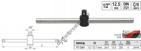 Trhák, vratidlo, ráčna YATO 1/2", typ T 255mm, YT-1243.