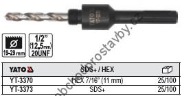 Unašeč YATO pro bimetalové vrtací korunky 1/2" (20UNF), 19-29mm SDS+, YT-3373