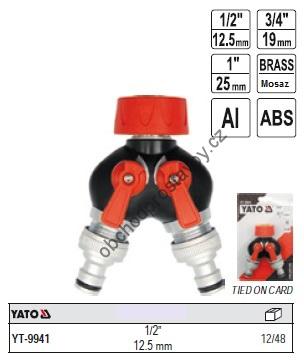 - Zahradní ventil, hadicový uzávěr dvojitý YATO s 3/4" šroubením YT-9941