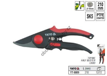 Zahradnické nůžky YATO kovadlinkové, ráčnové s celkovou délkou 210mm pokryté teflonem YT-8809.